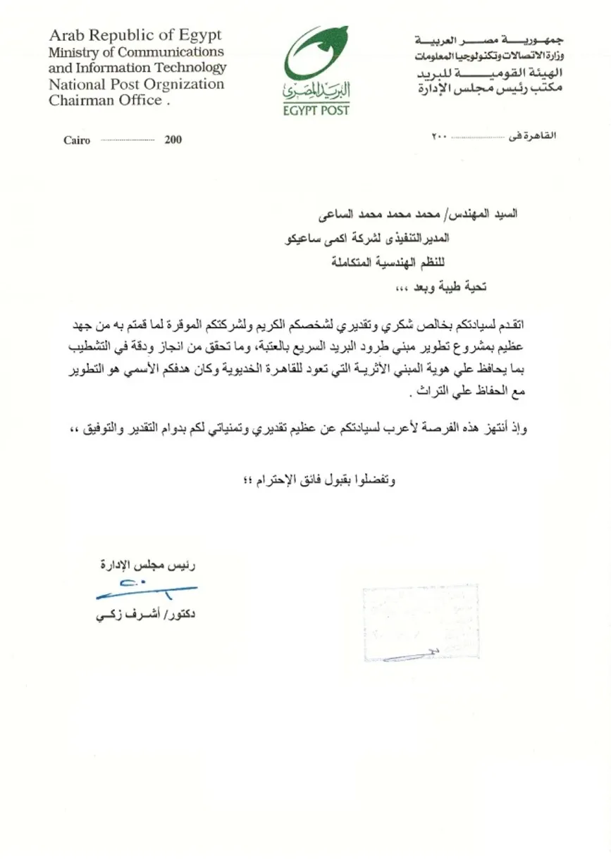 مشروع إعادة تطوير مبنى طرود البريد السريع بالجيزة يجسد تميز شركة أكمي سعيكم في الدمج بين الإبداع الهندسي والحفاظ على الهوية التاريخية. وبقيادة المهندس محمد محمد الساعي، حاز المشروع إشادة وطنية واسعة تعكس التزامنا بالجودة والابتكار في صياغة مستقبل عمراني متوازن.